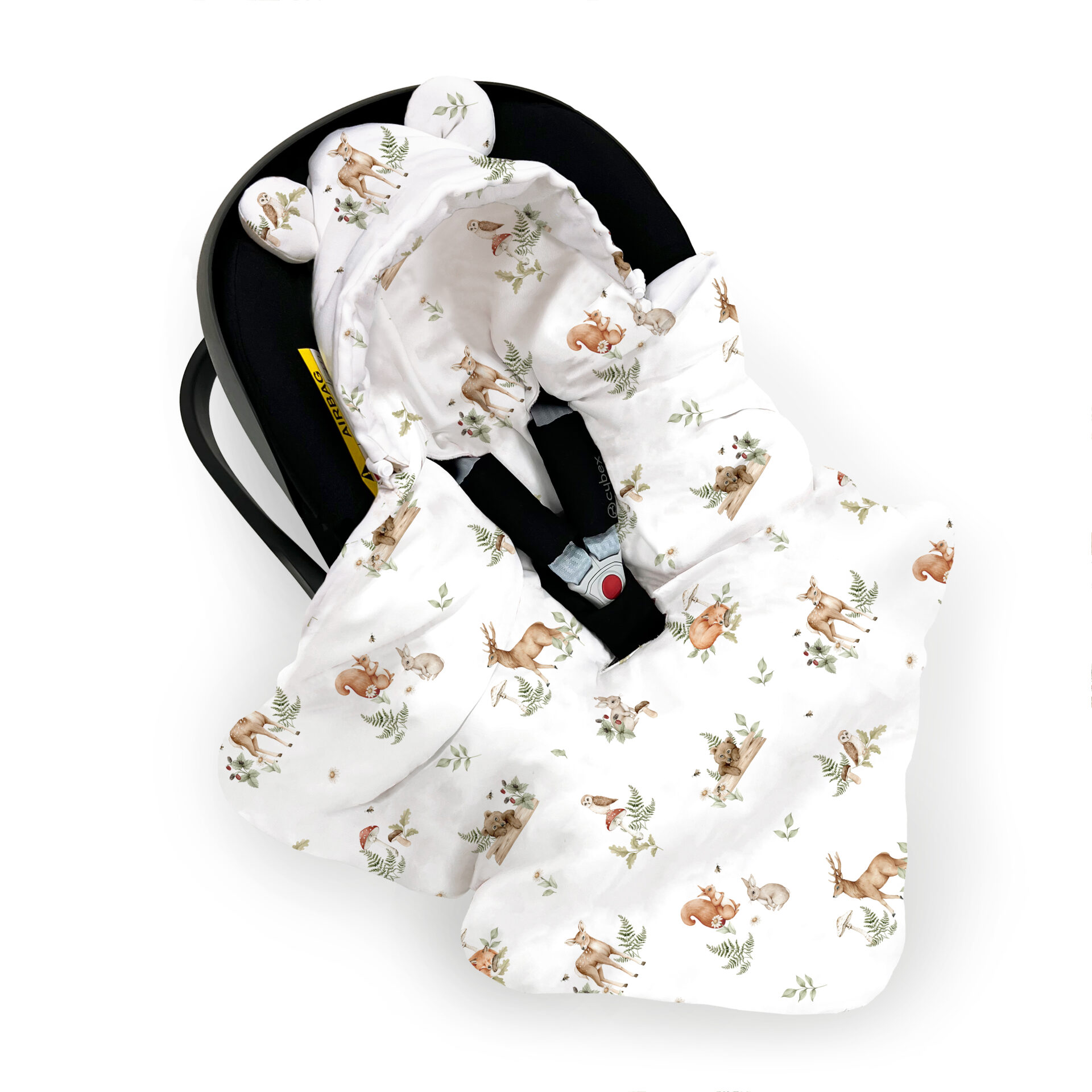 Kocyk został wykonany z najwyższej jakości, certyfikowanej, delikatnej przędzy bambusowej. Dzięki antyalergicznemu wypełnieniu silikonowemu jest lekki, ale cieplutki. Jest bardzo wygodnym rozwiązaniem przy podróżach czy spacerach z dzieckiem. Nie ma potrzeby już wyjmować, budzić za każdym razem maleństwa, kiedy chcesz z nim przejść, np.: z auta do pomieszczenia. Jego większy rozmiar sprawia, że posłuży nam naprawdę długo. Zapewnia komfort maluszkowi, chroniąc je przed chłodem i przyjemnie otulając w trakcie podróży czy spaceru. Dzięki uniwersalnym przeszyciom na pasy pasuje nie tylko do każdego fotelika (0-13), ale również spacerówki. Kapturek jest w specjalny sposób ukształtowany, aby nie opadał dziecku na oczka. Posiada również ściągacz, aby w chłodniejsze dni móc szczelniej osłonić główkę przed wiatrem.